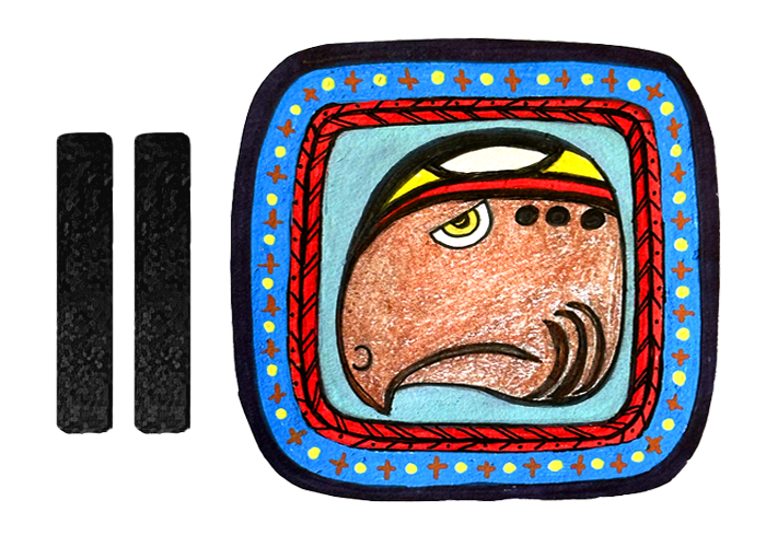 Tz’ikin Glyph: The glyph symbolizes and eagle’s head. The top part is bald, and the vertical lines are the feathers on the back of the head. –Carlos Barrios