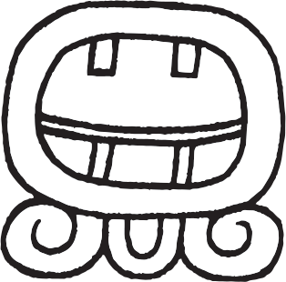 Aj Glyph: The vertical lines or stalks at the top of the glyph that come only partway down signify spiritual growth. The horizontal line, symbolizing multiplication and the horizon, is an altar table, and the sacred trees, such as the ceiba and coral tree, with their roots, trunk, and canopy, also represent a table or altar. –Carlos Barrios