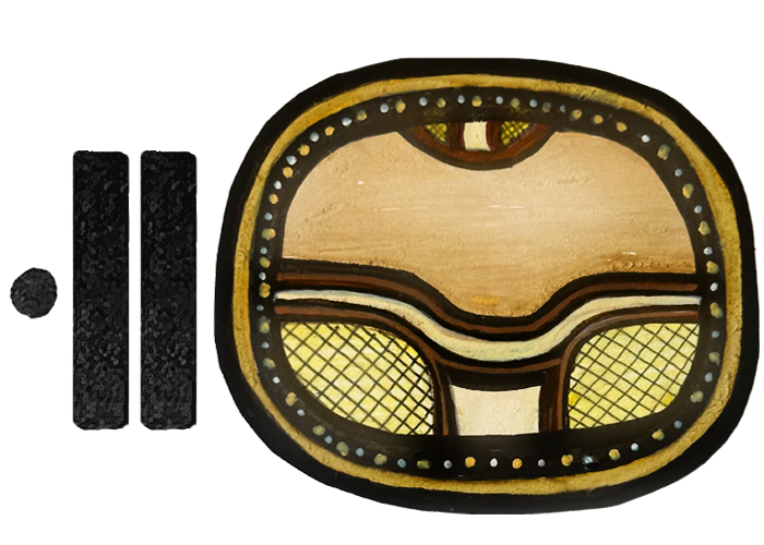 K’at Glyph: The glyph signifies the energy of gravity. It is represented by the sphere, trapped in the groove at the bottom, which divides the base into the two magnetic poles.