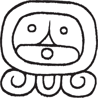 Ajpu Glyph: This glyph signifies the face of the hunter who uses a blowgun. He has a beard, and his mouth is rounded, about to shoot. –Carlos Barrios