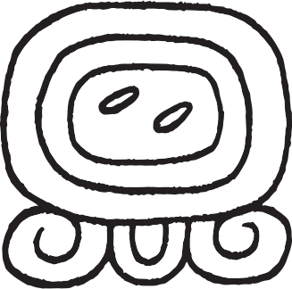 Kame Glyph: The glyph signifies death and is represented by closed eyes and a closed mouth. The circular line represents the cycles of reincarnation. –Carlos Barrios