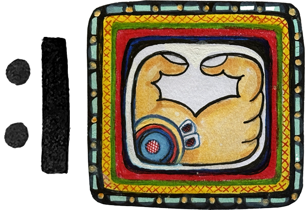 Kej Glyph: The glyph represents a closed hand creating a circuit of energy that charges the four cardinal points, as represented by the four fingers, boosted by the thumb. –Carlos Barrios