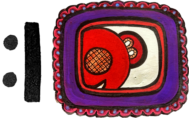 Toj Glyph: The glyph represents a wheel and its axis. It represents Grandfather Sun and his strength. It is a circle, symbolizing the law of cause and effect. –Carlos Barrios