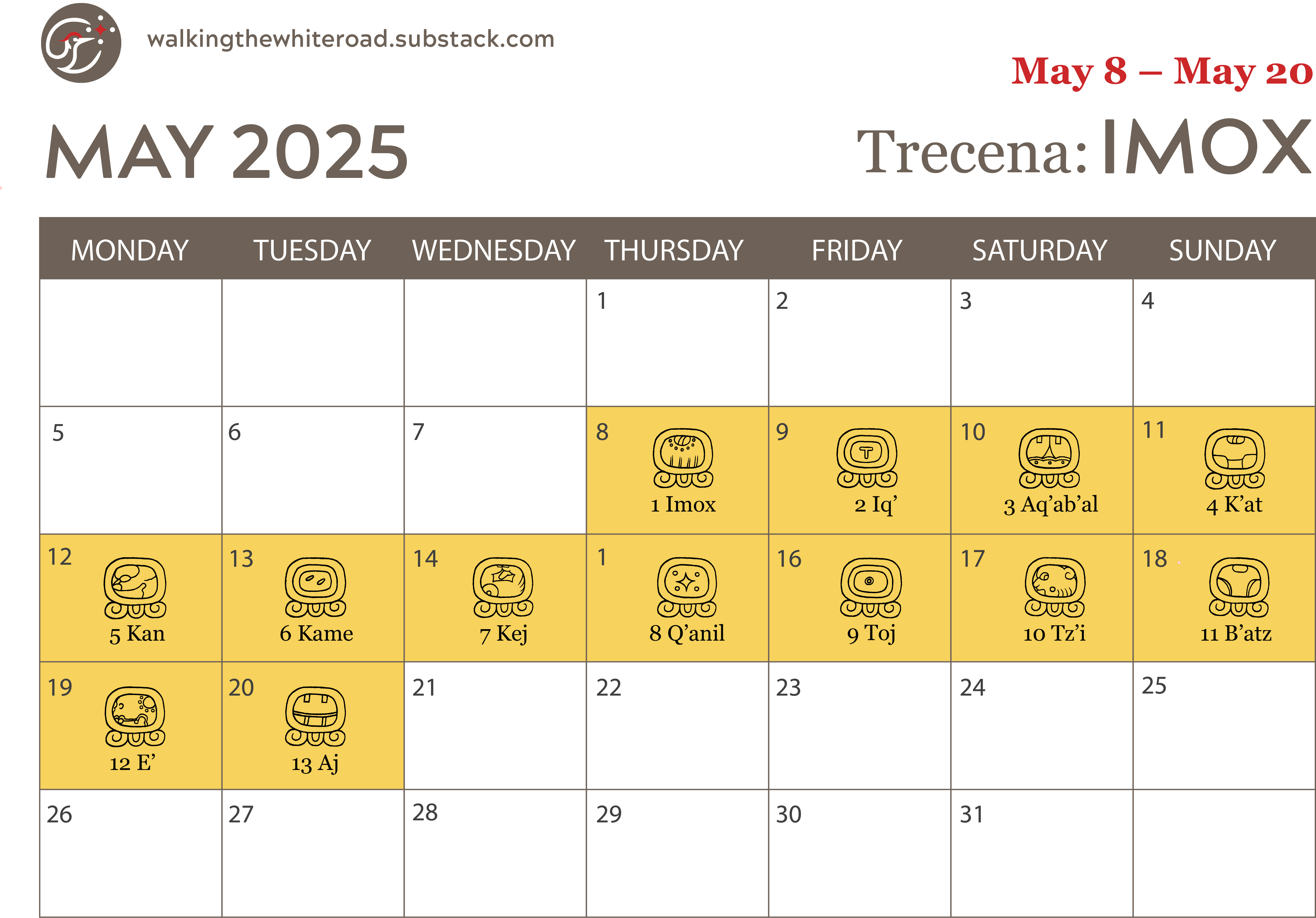 “On Imox days, the Maya give thanks, ask for rain and water, and pray that their dreams and visions bring them beauty and wisdom rather than delusions and madness.”