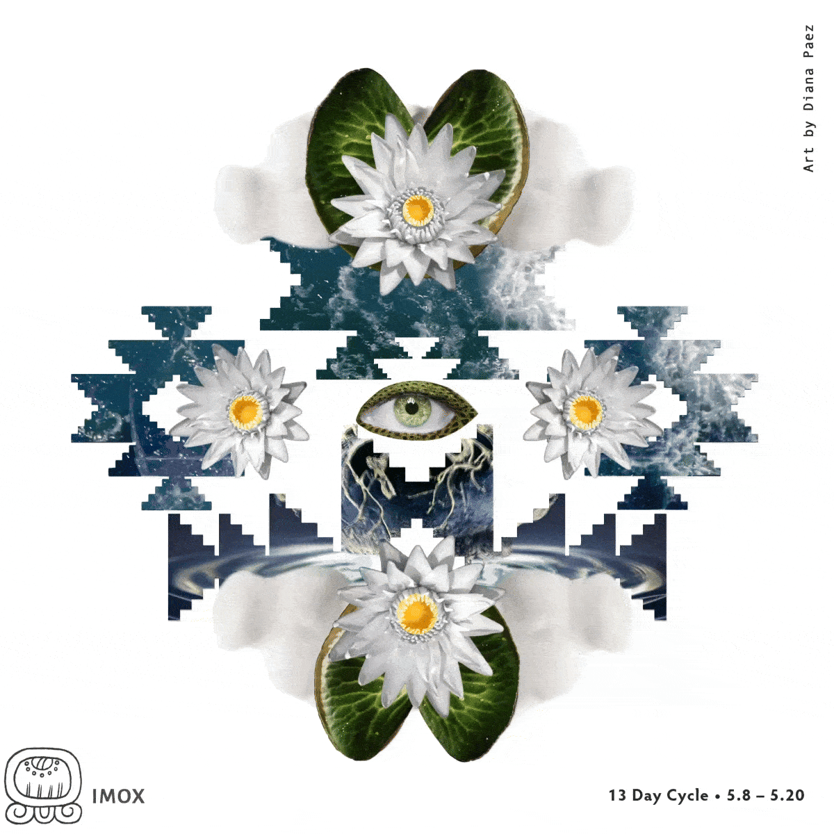 Imox is the spirit of rain and water, intrinsically linked with the collective unconscious and the hidden forces of the universe. This nawal represents the womb of creation, the origin from which all thought and life emerge. Imox incubates pure potential and nourishes existence with the vital, amniotic fluids of its boundless seas.