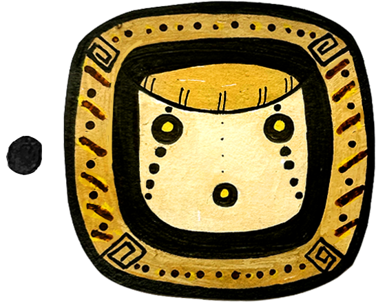 I’x Glyph: The glyph signifies the heart of the planet, the feminine reproductive organs, the face of a jaguar, and points on the map of Mother Earth. –Carlos Barrios