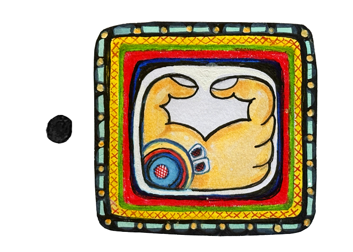Kej Glyph: The glyph represents a closed hand creating a circuit of energy that charges the four cardinal points, as represented by the four fingers, boosted by the thumb. –Carlos Barrios