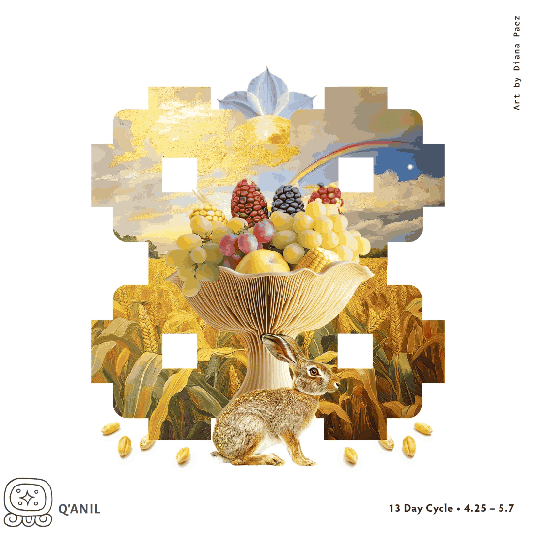 As these efforts mature into tangible results and achievements, Q’anil encourages us to celebrate beauty and abundance—while reminding us to practice moderation, as its influence can also lead to excess or overindulgence. This cycle also invites reflection on what it means to live joyfully and appreciate the richness of our present reality. Whether planting physical, spiritual, or emotional seeds, Q’anil’s energy helps bring them to their fullest, most radiant maturity.